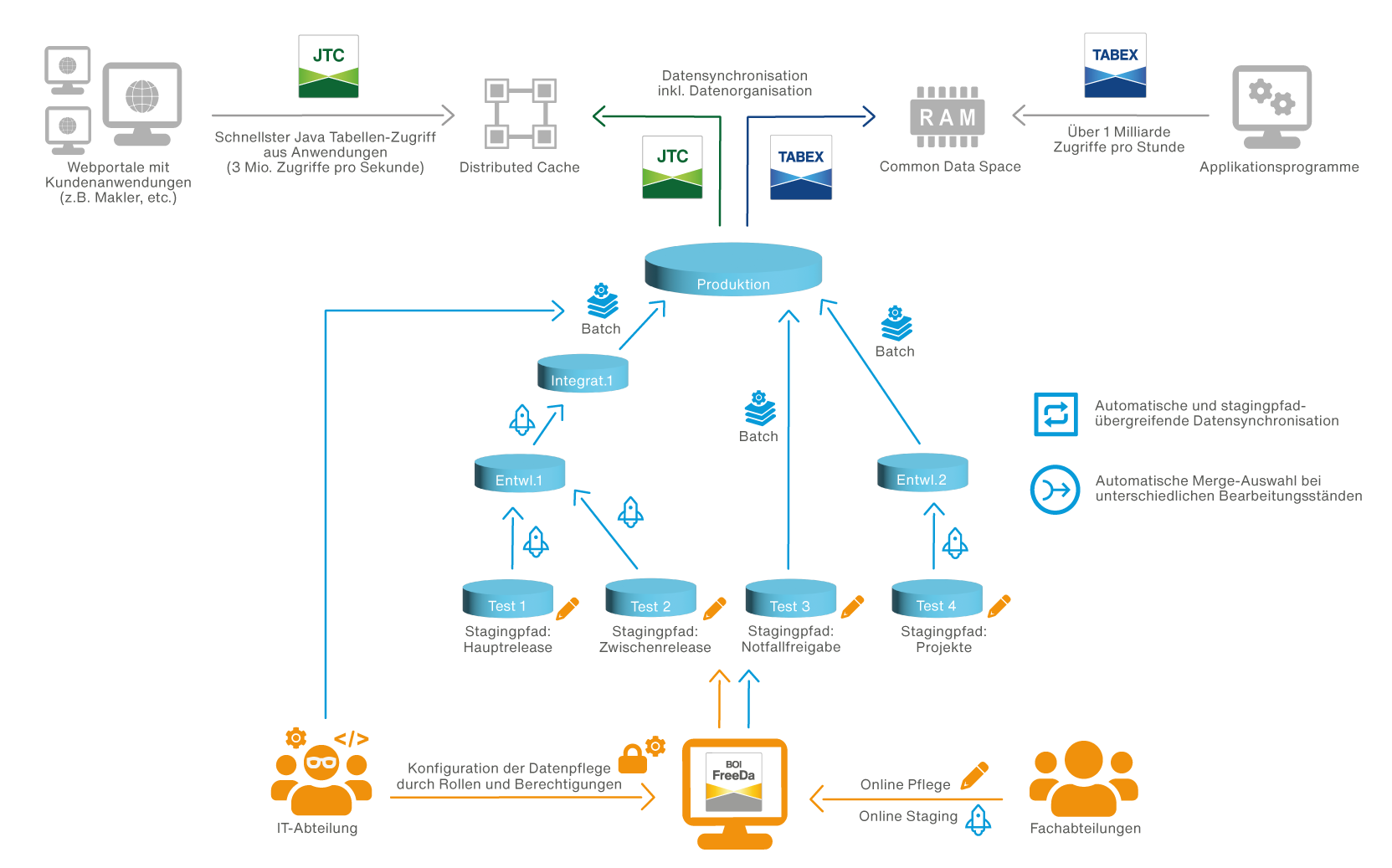 Mit BOI FreeDa und dem Zusatzmodul BOI FreeDa Staging wird eine durchgängige Lösung für die Pflege, das Staging und das Releasemanagement aller geschäftskritischen Daten eingeführt – vollständig konfigurierbar, hochgradig automatisierbar und revisionssicher.